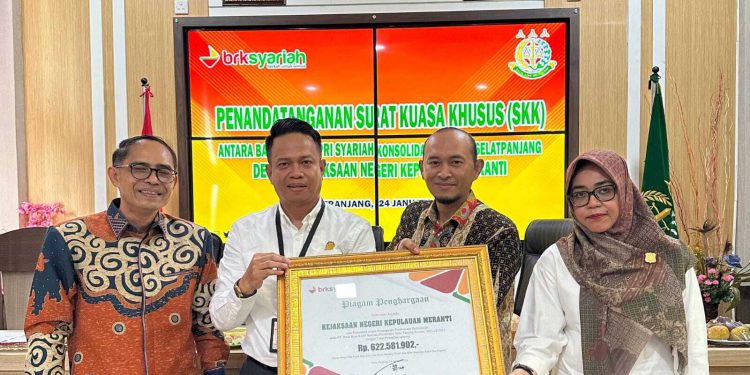 KENDARITERKINI.COM – PT Bank Riau Kepri Syariah (Perseroda) kembali memberikan kepercayaan kepada Kejaksaan Negeri (Kejari) Kepulauan Meranti dalam penanganan masalah hukum bidang Perdata dan Tata Usaha Negara. Kerjasama itu ditandai dengan penandatanganan Surat Kuasa Khusus (SKK).